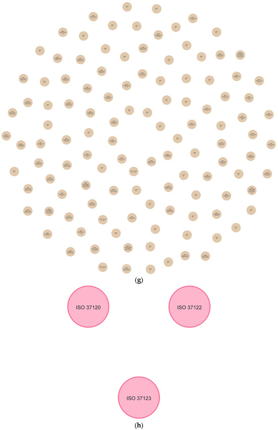 Through knowledge graph keyword comparison and information retrieval, related SDGs have provided the requirements of sustainable paths for developing resource-dependent cities. For example, SDG6 requires the rational use and strict protection of water resources, including the establishment of efficient sewage treatment systems and the recycling of water resources. Relevant departments and enterprises should refer to ISO 46001, “Water efficiency management systems—Requirements with guidance for use” [39], and ISO 23043, “Evaluation methods for industrial wastewater treatment and reuse technology” [40]. According to SDG7, traditional resource exploitation and utilization methods may have problems such as low energy efficiency and environmental pollution. Traditional resource-dependent cities can utilize their energy resources and industrial agglomeration advantages to facilitate the transformation to clean energy, referring to ISO 50001, “Energy management systems—Requirements with guidance for use” [41] and ISO 15112:2018, “Natural gas—Energy determination” [42]. According to SDG9, building a sustainable resource-dependent city necessitates upgrading and optimizing the infrastructure related to the resource industry, such as modern transportation systems for mines, efficient oil pipeline facilities, etc., and constructing urban infrastructure with resilience and smart development, referring to ISO 13623, “Petroleum and natural gas industries—Pipeline transportation systems” [43], and ISO 37175, “Smart community infrastructures—Operation and maintenance of utility tunnels” [26]. According to SDG11, the construction of sustainable resource-dependent cities demands rational planning of urban space to mitigate the negative impact of resource exploitation and processing activities on the quality of life of residents. Simultaneously, attention must be paid to the restoration of the ecological environment damaged by resource exploitation so that cities can achieve sustainable development in economic, social, and environmental aspects, referring to ISO 37101, “Sustainable development in communities—Management system for sustainable development—Requirements with guidance for use” [27], and the ISO 3712X series of cities’ evaluation standards [28,29,30].