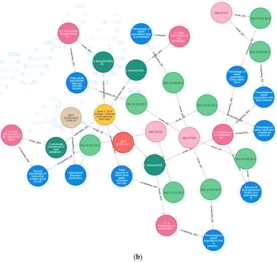 In conclusion, this study combines the previous research basis of ILCSD based on SDGs, introduces knowledge graph technology into the standardization research field of urban sustainable development, and further explores and analyzes the response relationship between urban sustainable development standards and SDGs. This will not only help to improve the efficiency and accuracy of the benchmarking work but also provide theoretical support and practical guidance for the construction of a better scientific standard system for urban sustainable development.