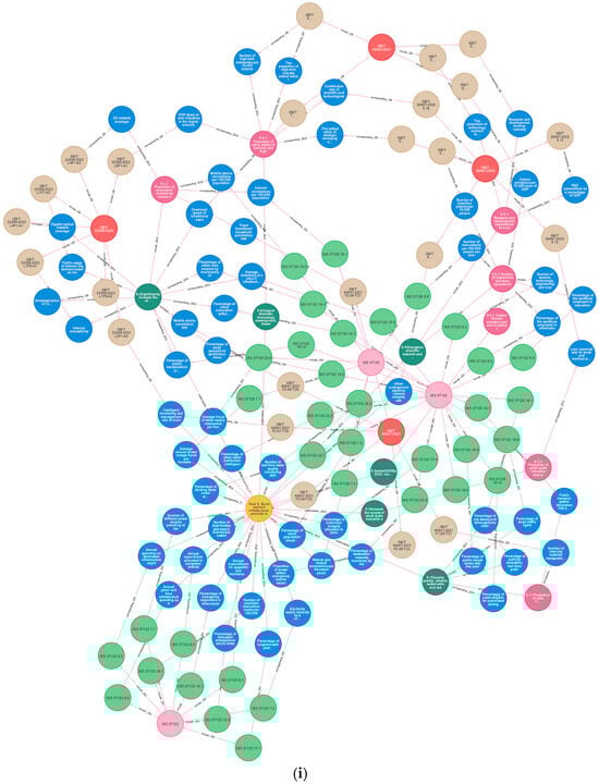 (a) Entity type1: SDG of 9 entity types in Neo4j; (b) Entity type2: SDG goal of 9 entity types in Neo4j; (c) Entity type3: SDG target of 9 entity types in Neo4j; (d) Entity type4: SDG indicator of 9 entity types in Neo4j; (e) Entity type5: ILCSD indicator of 9 entity types in Neo4j; (f) Entity type6: National Standard of 9 entity types in Neo4j; (g) Entity type7: National Standard indicator of 9 entity types in Neo4j; (h) Entity type8: International standard of 9 entity types in Neo4j; (i) Entity type9: International standard indicator of 9 entity types in Neo4j.
