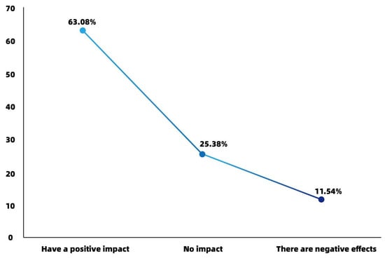 In the survey on the impact of natural elements in campus public learning spaces on individuals’ moods, the data showed that 63.08% of users believed that the introduction of natural elements had a positive impact on their moods, which manifested in the form of mood enhancement and stress relief. In addition, 25.38% of users indicated that the presence of natural elements did not have a significant impact on their moods, while 11.54% of users believed that natural elements could have a negative impact, such as distraction or discomfort. These results indicate that, although most users believed that natural elements can have a positive emotional impact in campus public learning spaces, there are still some users who believed that their impact is limited and may even produce an unfavorable emotional response. Therefore, natural elements should be carefully selected and introduced into the design to ensure that they have a positive impact on individuals’ emotions and avoid negative effects (Figure 7).