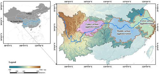 The Yangtze River Economic Belt (YREB), covering an extensive area of approximately 2.05 million square kilometers across eleven provinces and municipalities including Shanghai, Jiangsu, Zhejiang, Anhui, Jiangxi, Hubei, Hunan, Chongqing, Sichuan, Yunnan, and Guizhou, is one of China’s most crucial regions. It boasts a high level of economic development, benefits from a well-developed transportation infrastructure, and occupies a strategic position in the heart of China. Furthermore, the YREB is globally recognized for its “golden waterway”, a unique and valuable resource that serves as a vital hub for China’s coordinated production and distribution, significantly contributing to regional development [1,2].