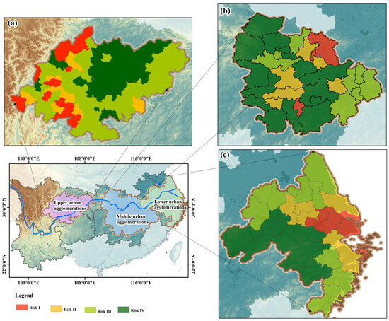 4.3. Risk Assessment for the Three Urban Agglomerations