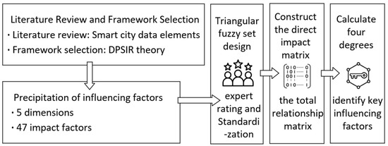 In addition, the use of fuzzy set theory can triangulate the experts’ scoring, thus ensuring the objectivity of experts’ scoring and making the subsequent identification of key influence factors more accurate. In summary, the fuzzy-DEMATEL method adopted in this paper can effectively identify the key influence factors of the value release of data elements in smart cities, clearly show the relationship between the influence factors, identify the attribute of each influence factor, and help the subsequent research to be carried out. Figure 2 is the analysis framework of this study.