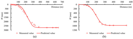 The formula for calculating the maximum subsidence velocity (empirical Formula (2)) was determined by fitting and verified by several mining areas, as shown in Formula (24) [23].