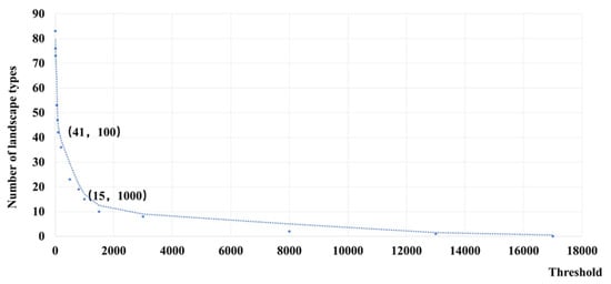 Distribution of landscape character area thresholds in the Jianghan Plain.