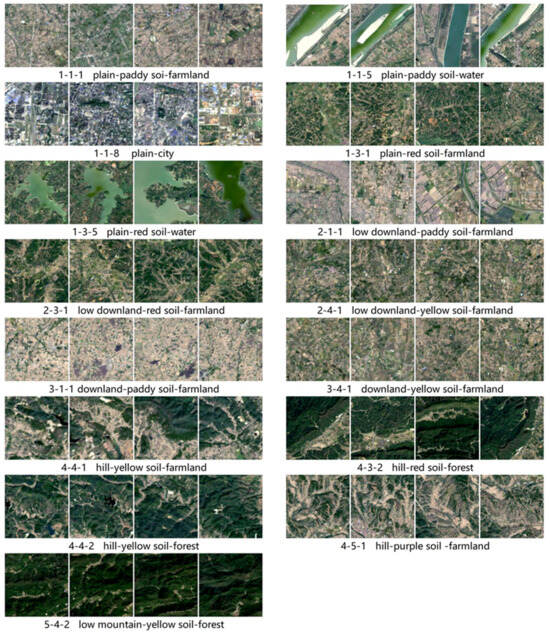 Unlike previous studies that mainly focused on identifying specific objects in remote sensing image data [,], this paper achieves a direct recognition and classification of landscape character types to which remote sensing images belong. Using the AI-LC classifier, this study not only facilitates the classification and recognition of landscape character types but also, through the process of category optimization, provides novel insights into the interrelationships among landscape character type characteristics. From a macro-perspective, the system initially categorized the Jianghan Plain into 15 major categories. Leveraging AI recognition capabilities, the 15 initially identified categories were further optimized to 10, increasing the accuracy rate to 89%. The optimization results revealed distinguishable landscape characters, such as low-elevation farmland on the central Jianghan Plain (1-1-1), paddy soil and yellow soil farmland transitioning from the northern Tongbai Mountains and the southern foothills of the Dabie Mountains to the plains (2-1-1, 3-1-1, etc.), and red soil farmland transitioning from southeastern Mugao Mountain to the plain area (2-3-1 and 1-3-1). However, a greater similarity between paddy soil and yellow soil farmland was observed when transitioning northwards from the central plain into the low downland, downland, and hill areas (2-1-1, 3-1-1, 2-4-1, 3-4-1, and 4-4-1). Consequently, the landscape characters of the northern low-elevation farmland exhibit notable changes compared with those of the central low-elevation farmland primarily due to the varying terrain relief. Moreover, southern low-elevation farmland, characterized by numerous distinct water bodies, has undergone significant alterations in its landscape character (Figure 8a).