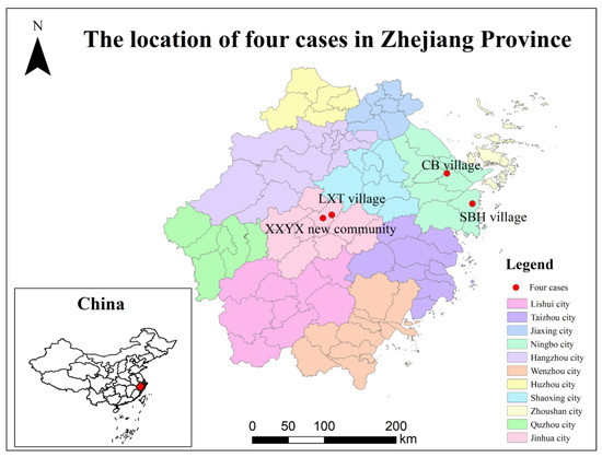 As the analysis was comparative, it was desirable to select cases located in the same city and implemented during the same period to minimize the impact of temporal and spatial effects. Although city and county governments can set their own urban strategies, the institutional arrangements of UVRPs are generally consistent within a city, except for cities involved in pilot reforms. Therefore, it was impossible to select four cases with four different institutional arrangements from a single city in China. As an alternative strategy, we selected four cases from one province to reduce temporal and geographical variations. Ultimately, Zhejiang Province was selected, not only because Zhejiang Province is one of the most economically active provinces in China, but also because Zhejiang Province has accumulated rich practical experience in UVRPs. In 2013, Zhejiang Province decided to carry out the ‘three changes and one demolition’, that is, the renewal of old residential areas, old factories, and urban villages and the demolition of illegal buildings. Zhejiang’s practice of ‘three changes and one demolition’ has been affirmed by the Ministry of Housing and Urban–Rural Development. In addition, under the guidance of policies issued by the central government (Guofa [2015] No. 37), Zhejiang Province has implemented large-scale UVRPs. Therefore, taking Zhejiang Province as a case to analyze the experience of UVRPs can provide valuable references for other areas in China. The study sites for the four cases are presented in Figure 2.