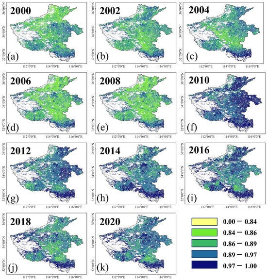 3.1.2. The CLUI Has Obvious Differences Between Years