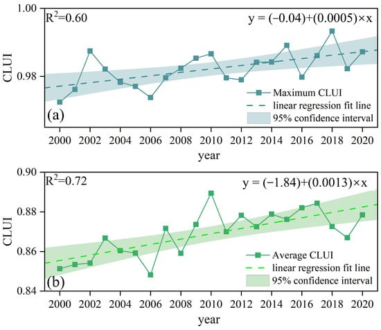 3.1.1. The Overall CLUI Shows a Fluctuating Upward Trend