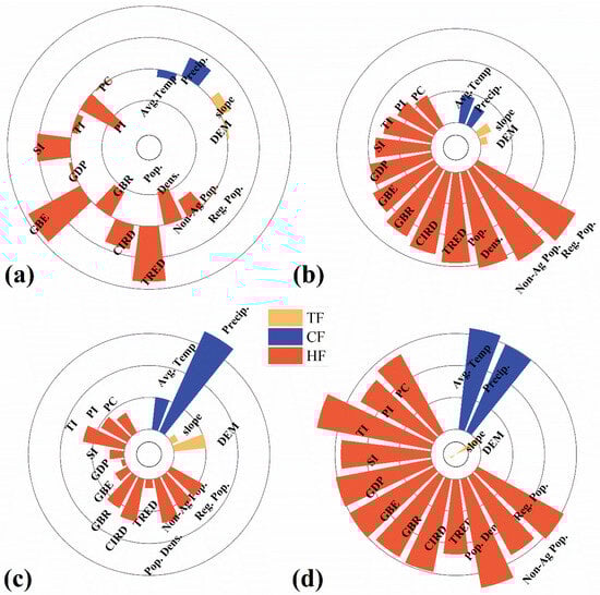 4.2. Impact of Human Activity Factors on CLUE