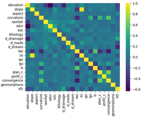 The multi-collinearity test is a popular statistical method that uses a linear relationship among the specified independent variables to reduce the possible chance of error in the gully erosion susceptibility models [7,52]. To improve the outcomes of this study, high multi-collinearity variables must be eliminated [9].