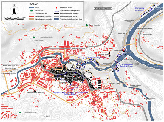 The historical landscape of Dongxi Ancient Town in the transformation and expansion phase. (Source: Self-drawn by the author).