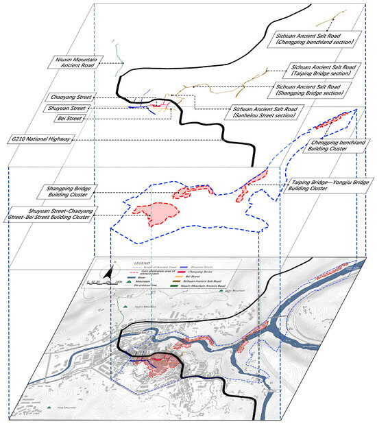 This study addresses these gaps by refining methods to align with Dongxi’s context, particularly in analyzing driving factors, enhancing public participation, and managing dynamic changes. Using the layered interpretation method of HUL, this research evaluates the drivers and outcomes of historical landscape changes and proposes adaptive strategies. This approach enhances understanding of Dongxi’s heritage value and interconnections, providing actionable insights for regional protection and development while offering a practical framework for similar heritage sites.