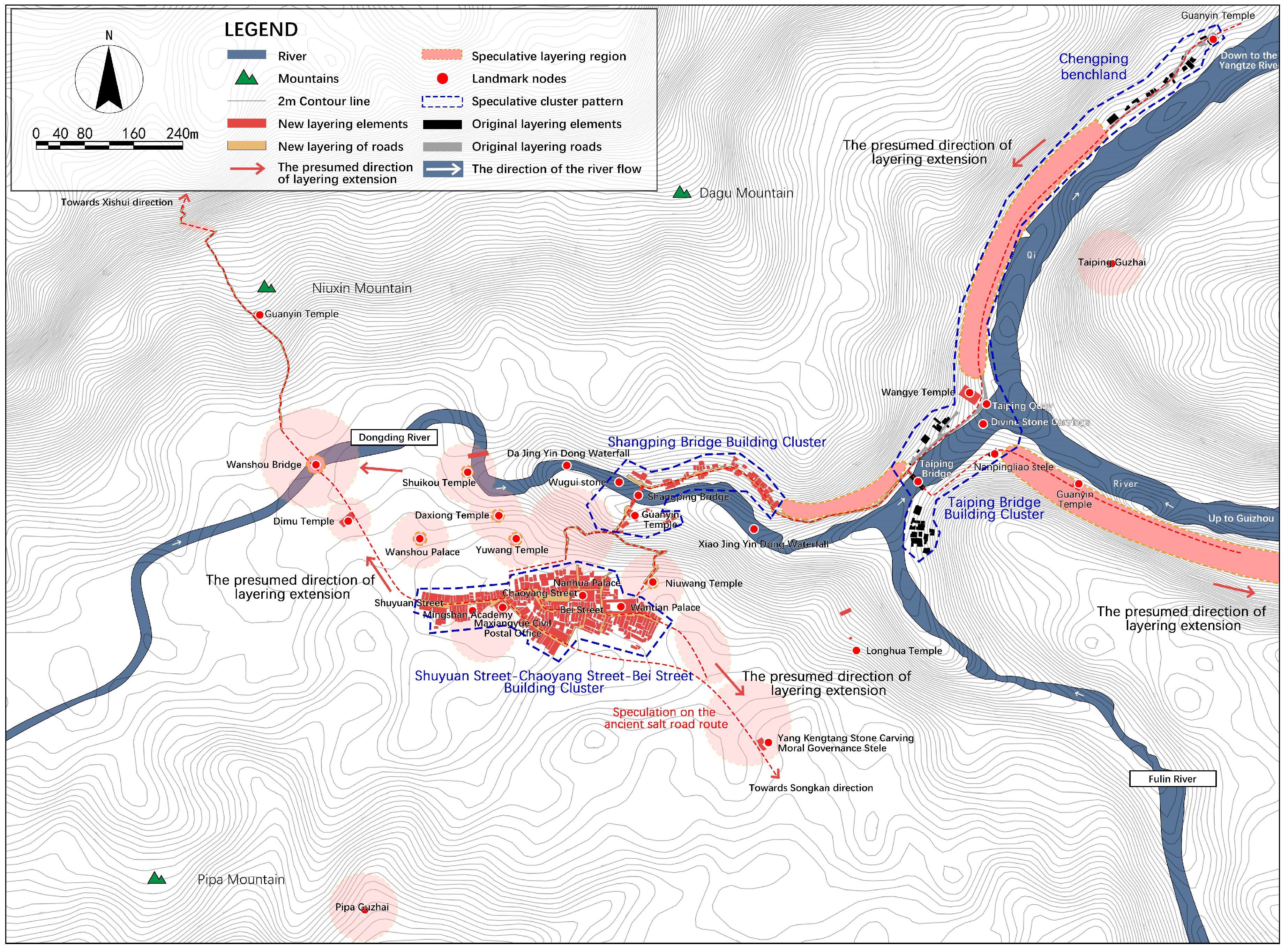 Stratified change of historical landscape in Dongxi Ancient Town. (Source: Created by the author).