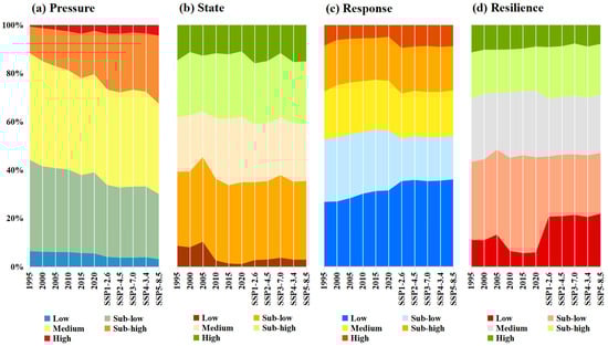 (a–d) Area proportion of different levels of P, S, R, and ER, respectively.