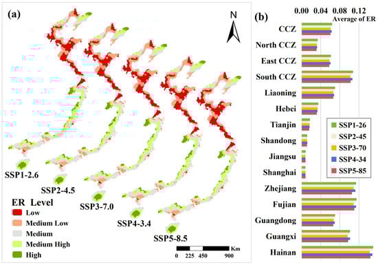 Spatial distribution of ER (a) and average of ER (b) under SSP-RCP scenarios in 2030.