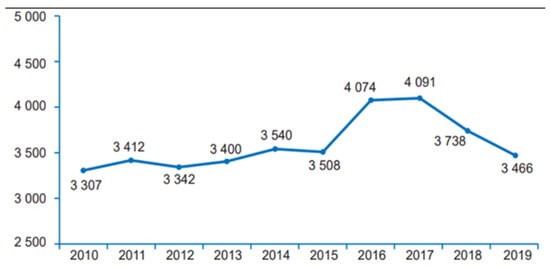 Figure 3. Number of accidents registered on pedestrian crossings in Poland.