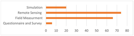 The texture of the soil also plays a significant role in the water needs of vegetation. For instance, a study in Hamburg found that plants growing on clayey soils suffer more from water stress during warm and dry periods, leading to reduced transpiration and a lower cooling effect. This finding is contrary to expectations, as clay-rich soils generally have a higher water storage capacity and are often found in floodplains with likely capillary contact with groundwater. However, the low unsaturated hydraulic conductivity in the fine pores of these soils limits the rate of root water uptake and capillary rise, thereby diminishing their cooling potential [146]. Although no studies specifically focused on the role of irrigation in influencing PCI, several have acknowledged it as a contributing factor. Table A6 provides a summary of the studies highlighting the impact of irrigation on PCI.