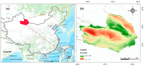 (a) Location of the study area in China and (b) elevation of the study area.