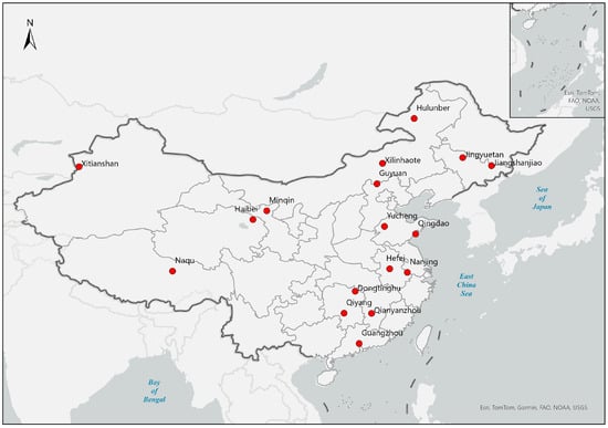 The spatial distribution of the SONTE-China 17 sites within the study area.