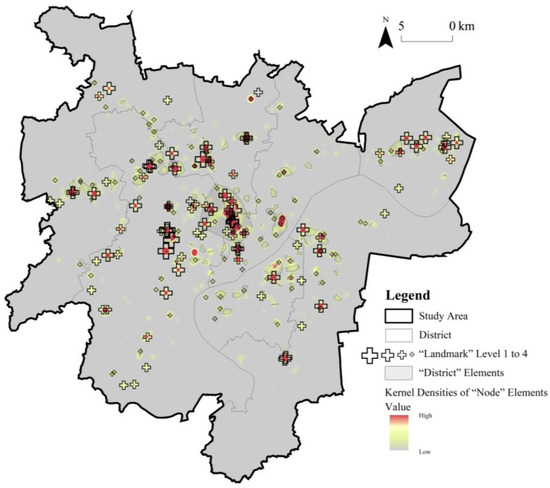 The overlay cognitive map of “Districts”, “Nodes”, and “Landmarks” in Hangzhou.