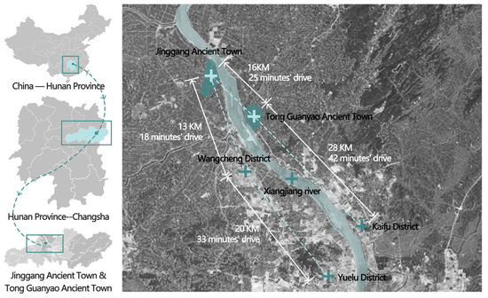 Figure 2. Regional scope: Tongguan Kiln Ancient Town and Jinggang Ancient Town, Changsha, Hunan Province, China.