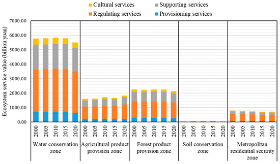 Ecosystem services value from 2000 to 2020 in each ecological function zone.