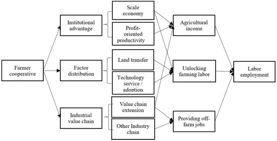 The mechanisms underpinning farmer cooperatives’ impact on rural labor employment can be examined into three aspects: institutional advantages, factor distribution, and value chain extension.