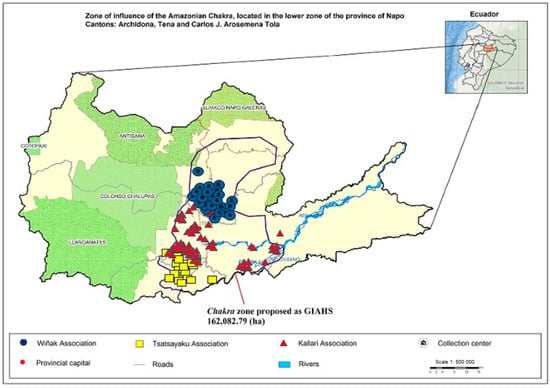 This study focuses on three key associations. (a) The Kallari Association, considered large in our study, with 980 producers, 95% of whom are Kichwa Amazonian. The association specializes in the processing and commercialization of products such as cacao (Theobroma cacao L.), vanilla (Vanilla spp.), guayusa (Ilex guayusa Loes.), and chocolate bars. These products are primarily exported to international markets, including the Czech Republic, Germany, France, the UK, and the USA. (b) The Wiñak Association, categorized as medium-sized in our study, with 355 Kichwa Amazonian producers. Wiñak focuses on the commercialization of cacao (Theobroma cacao L.), guayusa (Ilex guayusa Loes.), banana (Musa paradisiaca L.), cassava (Manihot esculenta Crantz), chocolate bars, and ground guayusa. Cacao, guayusa, and banana are the most relevant products, and their markets extend locally and internationally, including Italy, Japan, Mexico, and Spain. (c) The Tsatsayaku Association, classified as small, with 58 mestizo and Kichwa producers. Tsatsayaku primarily markets cacao paste (Theobroma cacao L.), chocolate, and chocolate nibs, with the first two products being the most prominent. Their commercialization is focused on the national market [24].