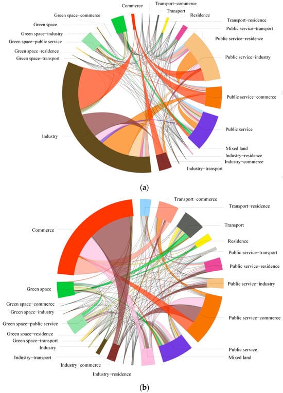 Chordal diagrams of land use transfer. (a) 2008–2014; (b) 2014–2022.