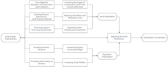 As part of comprehensive reform in Chongqing, the LQT system is closely linked with the reform of the household registration (hukou) system, making this policy intrinsically connected to both land urbanization and population urbanization. Concurrently, the coordinated development of population urbanization and land urbanization represents a critical issue for sustainable urban development. Based on these considerations, the primary question of this study is whether LQT policy can promote the aggregation of land and population factors, facilitating the coordinated development of land urbanization and population urbanization. To investigate this, we build a theoretical framework to explain the influence of LQT policies on land urbanization, population urbanization, as well as the urbanization coordination of land and population. Then, we employ a time-varying DID (Difference-in-Differences) approach to empirically examine the effect.