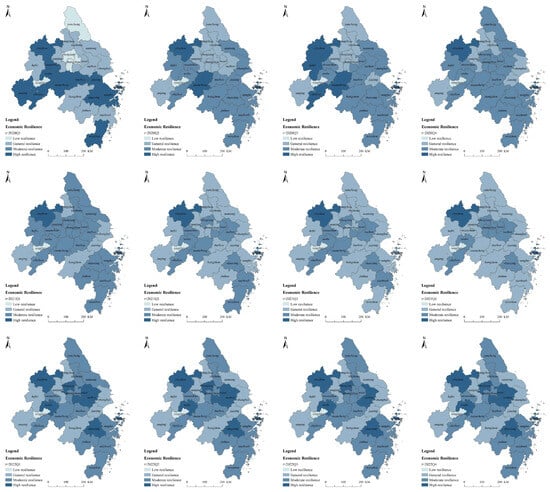 3.2. Spatiotemporal Distribution Characteristics of Economic Resilience
