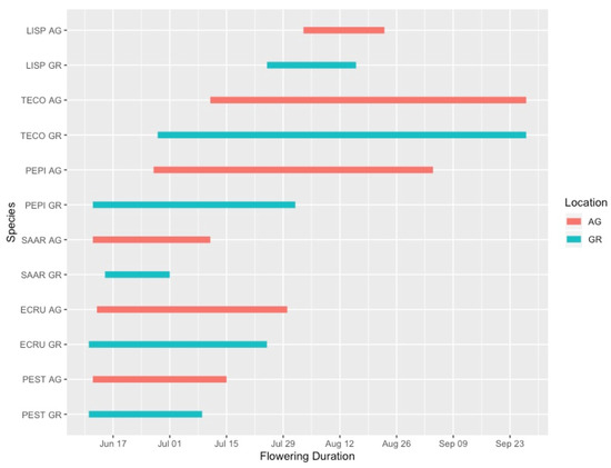 APA StyleGuidi, M., & Bousselot, J. (2024). Earlier Flowering Phenology and Pollinator Visitation on Urban Green Roofs Compared to Ground-Level Gardens. Land, 13(2), 178. https://doi.org/10.3390/land13020178