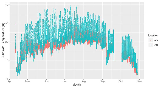 - Reyes, R.; Bustamante, W.; Gironás, J.; Pastén, P.A.; Rojas, V.; Suárez, F.; Vera, S.; Victorero, F.; Bonilla, C.A. Effect of substrate depth and roof layers on green roof temperature and water requirements in a semi-arid climate. Ecol. Eng. 2016, 97, 624–632. [Google Scholar] [CrossRef]