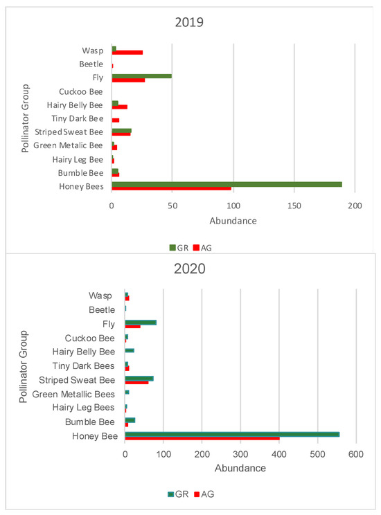 | Honey Bee | Bumble Bee | Hairy Leg Bee | Green Metallic Bee | Striped Sweat Bee | Tiny Dark Bee | Hairy Belly Bee | Cuckoo Bee | Fly | Beetle | Wasp | Total Pollinator | Native Bees | Other Pollinator | ||||||||||||||