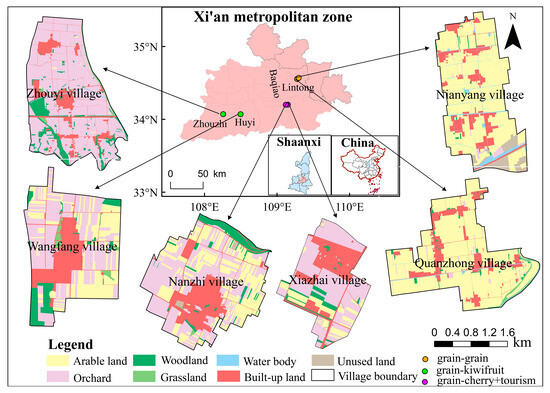 Typical villages and their land use in the Xi’an metropolitan zone in 2020 (note: map content approval number: GS (2019)1822).