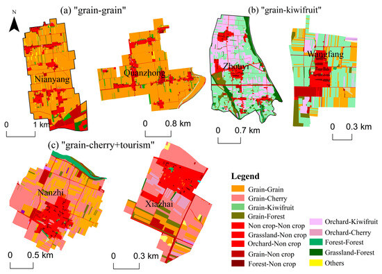 With regard to human well-being, the resource economic situation is the most commonly shared dimension of well-being by farmers in all three transitions; these indicated that accessing enough resources and earning a high income are extremely important for farmers and are both seen as fundamental and key aspects of well-being [67]. Therefore, this dimension observed the largest growth in the “grain-cherry + tourism” transition due to the large growth of a household’s income and village’s economy, with the farmer willingly acquiring the practice modes of modern agriculture and market economic values and having the courage to develop the cherry-picking tourism and expand the rural industrial convergence, thus promoting the pace of economic increases and well-being improvement. In the “grain-grain” transition, farmers pay more attention to the health and safety aspects of well-being, as a result of this having the highest proportion of the elderly labor force, where well-being and health are closely related; this link could become increasingly important at older ages, if only because the prevalence of chronic illness increases with advancing age [68]. In addition, the elderly often mentioned that the local environmental sanitation was poor during the interview, caused by air and water pollution, posing a threat to their well-being. And, in the “grain-kiwifruit” transition, farmers attach greater importance to social relationships of well-being. The process of field management of kiwifruit production including seed selecting, artificial pollination, fertilizing, and pesticide spraying, being very important to improve the yield and quality, promotes the farmers’ communication with each other who can actively acquire agricultural knowledge and advanced production techniques, frequently sharing experiences and assisting each other during busy farming seasons, thus strengthening their cohesion. Moreover, in the process of kiwifruit production, farmers have established close relations with many buyers and providers (supplying agricultural inputs). The social network of relationships is quite important for kiwifruit planting. The differences of human well-being are essentially determined by a specific environmental and cultural context of social groups, namely, the nature–land system; these suggested that the differences of human well-being between any two social groups were reflected in two aspects of the dimension (primary focuses) and degree (level) of well-being. However, how to measure the dimension differences of well-being is still rare in research approaches. In the study, an approach on distinguishing the dimensions of well-being based on grounded theory and qualitative analysis methods was put forward. The results prove that the approach clearly identifies the differences of well-being between different agricultural transition contexts and are suitable to apply to similar research.