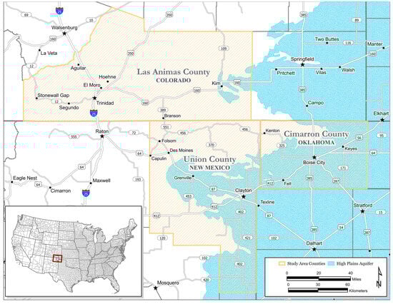 The tri-county, tri-state study area in relation to the High Plains (Ogallala) Aquifer in the United States of America. Source: the authors.