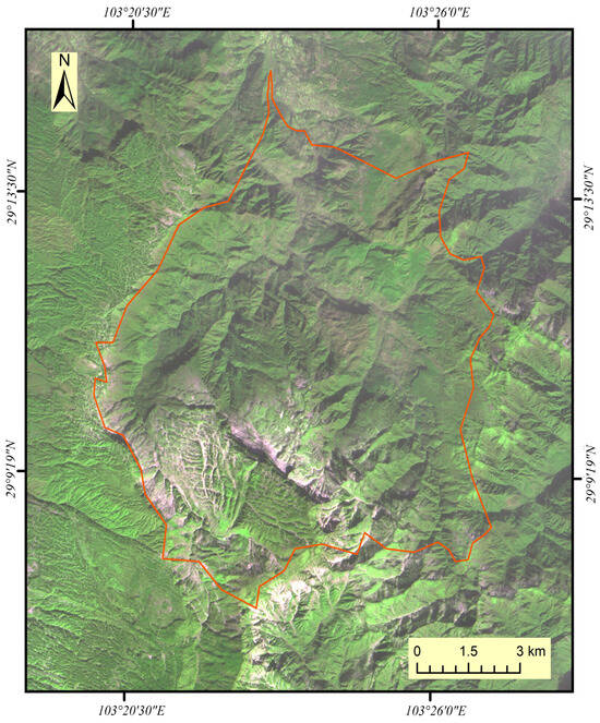 Yanghe Township, situated within Leshan City, Sichuan Province (Figure 1), spans 123.8 square kilometers. The area’s river system has been shaped by regional geological structures and the course alterations of rivers like the Dadu River. Additionally, the region experiences abundant annual precipitation, leading to frequent summer floods. The study area exhibits significant topographic contrasts due to multi-stage tectonic movements, with a noticeable transition between the basin and the marginal mountain area (Figure 2). The mountainous structure in this region has been greatly influenced by numerous strong earthquakes [4,5,6,7], providing ample evidence for earthquake-induced landslide debris flows. Based on the available data provided by the Copernicus Data Space Ecosystem and according to incomplete statistics provided by the China Natural Disaster Database, from 2016 to 2023, there were 26 landslides and 3 debris flows in this area.
