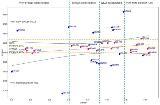 The results obtained allow us to evaluate, based on their greater or lesser similarity, the strength of the borders for the flow of flora.