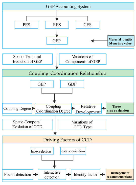 Secondly, within the framework of the Coupling Coordination Degree, the three methods of Coupling Degree, Coupling Coordination Degree, and Relative Development Degree were comprehensively adopted to evaluate the interaction between GEP and GDP.