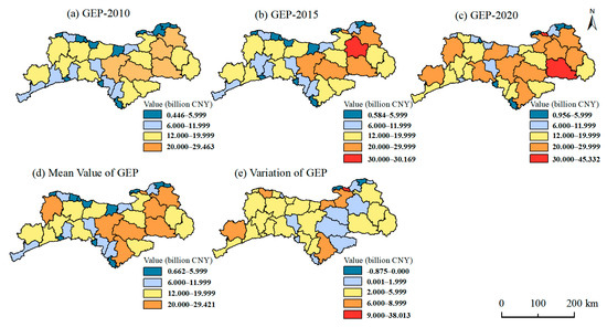 Secondly, the ecosystem and the economic system are the vital powers in the survival and development of human society [29]. GEP and GDP are parallel indicators in these two systems, respectively. GDP can solely summarize the development of the entire social economy, while GEP can summarize the status of the ecosystem on its own. The accounting of GEP goes beyond GDP, which is an important supplement and improvement in the statistics and management of the social economy. It can measure the economic value of the ecosystem to human society [25], and provide a quantitative scientific reference for ecological protection and ecological compensation.
