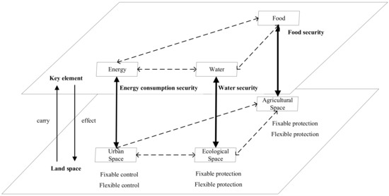 The organic fusion of fixability and flexibility is the fundamental condition for creating a good spatial order. Faced with the problems of resource depletion, environmental pollution and disordered spatial development, the traditional idea of “development before protection” must be changed in this new stage of territorial spatial planning in China. Moreover, the relationship between the fixability and flexibility of territorial spatial planning should be coordinated. However, there is currently a lack of a mature dynamic framework for analysing the conflicts that occur during territorial spatial planning, and for further analysing the integration of development and protection objectives of territorial spatial planning, such as food security, economic development, energy consumption and water security, which are the main objectives of territorial spatial planning. This paper introduces the Food–Energy–Water Nexus, which is a newly developed systematic framework for sustainable development, to research the relationship among different objectives of territorial spatial planning. The Food–Energy–Water Nexus concept is used to identify direct and indirect influences from the development of the three subsystems or resources [5]. For sustainable development, the approaches aim to increase synergies and decrease trade-offs in order to reduce the unintended consequences of systematic risks.