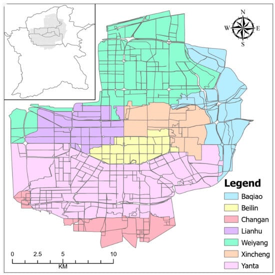 Xi’an, with a total area of 10,108 square kilometers and a permanent population of 12.9959 million, is a central city in the northwest region of China. The number of vehicles in Xi’an increased from 180,000 in 1997 to 4.02 million by 2021 due to the rapid expansion of urban roads and a substantial influx of population. This study focuses on the area within Xi’an’s 3rd Ring Road, which is a prominent urban center characterized by dense population and commercial activities, as well as facing serious congestion issues. To thoroughly analyze the congestion in this area, we divided the study area into 680 separate plots based on the main road network and land properties. After a meticulous selection process to exclude smaller units, 520 effective plots were identified as the subjects of this study, as illustrated in Figure 1.