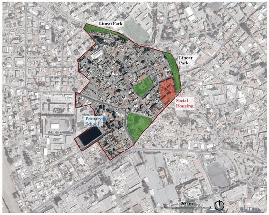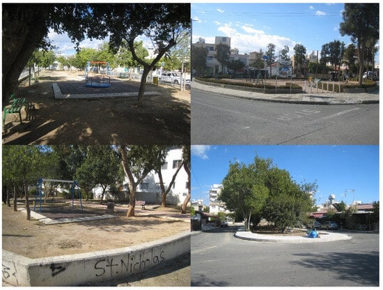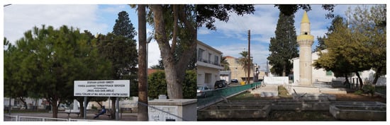 The area comprises several designated public green spaces, including two sections of the newly developed linear park along the Garyllis River and two smaller parks. One of these parks, which also features a small Muslim cemetery, is situated in front of the Arnaout Mosque and the Municipal Administrative Offices responsible for managing Turkish Cypriot properties. These administrative offices have a historical legacy, originally starting out as the People’s Home, founded in 1953. Over time, it served various functions, including hosting festivals, balls, wedding ceremonies, conferences, and meetings, and later operating as a hospital until 1974 [47]. The other public green space is on a triangular piece of land, formerly a Muslim cemetery, located between Misiaouli and Kavazoglou Road, Djelal Bayar Street, and Beyazit Street. Additionally, a small formal public space is embedded within the parking lot of the only purpose-built housing estate in the area.