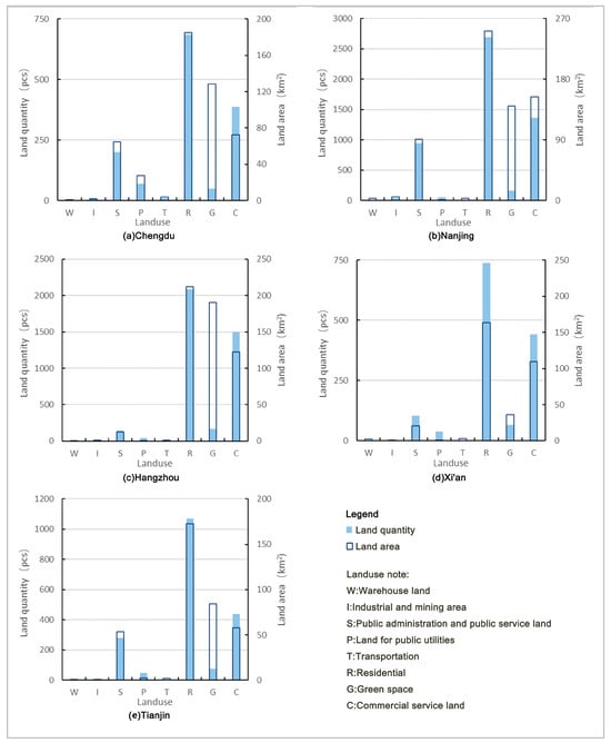 Quantity and area of land use in five new first-tier cities.