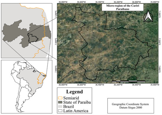 Location map of the study area in the Cariri Velhos micro-region—PB.