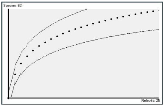 Species accumulation curve with associated 95% confidence interval limits for the dry meadow in Roje.