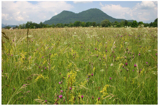 Dry and semi-dry meadows were once widespread. Due to changed management methods, they now represent highly threatened habitats, which is observed both in Slovenia [8,10,11,13,15,29,30,39] and abroad [3,35,40,41,42,43]. Every meadow recognised as rich in biodiversity should therefore be properly studied and properly managed, as it can represent an important island of biodiversity that can, if necessary, be utilised as a source for natural or planned regeneration of biodiversity-poor meadows.