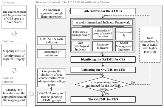 Based on the OATMU identification method, this study identified the OATMU for CES in the Qiantang River Basin from a multi-dimensional perspective. The method included four main steps: finalizing alternatives for ATMUs, establishing a multi-dimensional indicator framework for identifying the OATMU for CES, calculating the OATMU for each indicator, and calculating and validating the OATMU for CES.